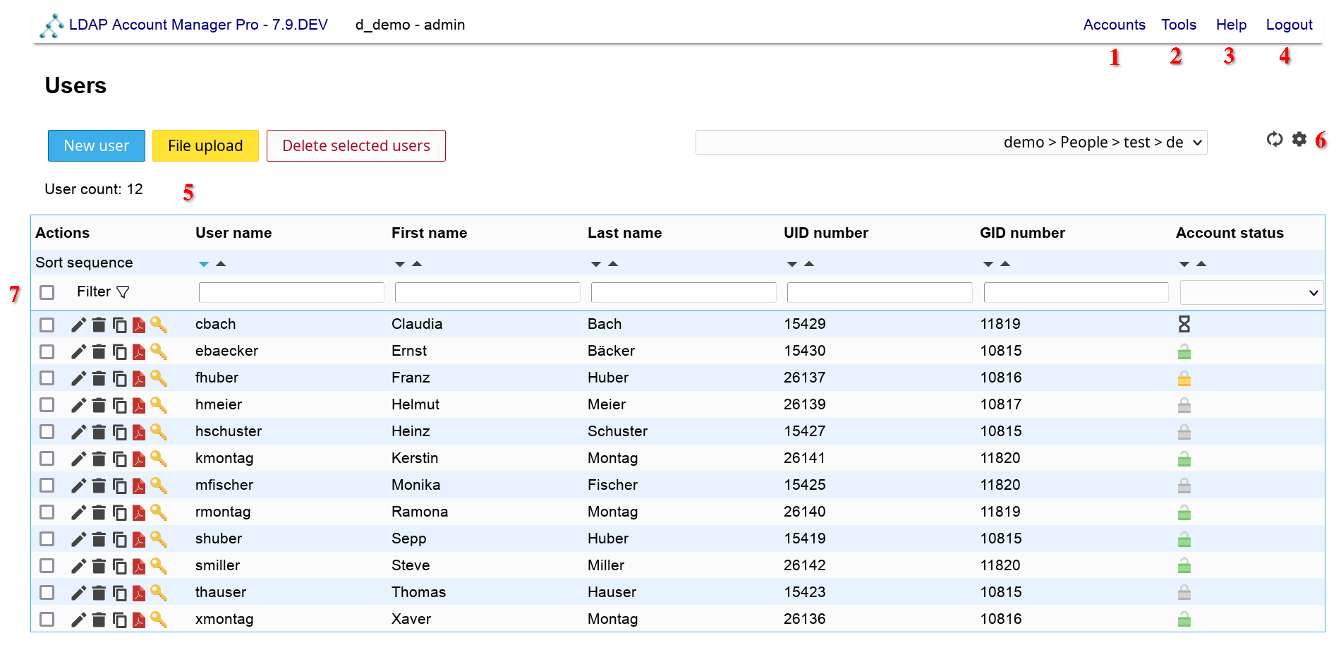 This is the main part of the application. It allows to manage a large list of LDAP entries (e.g. users, groups, DNS entries, ...). This part is accessed by LDAP admins and support staff.