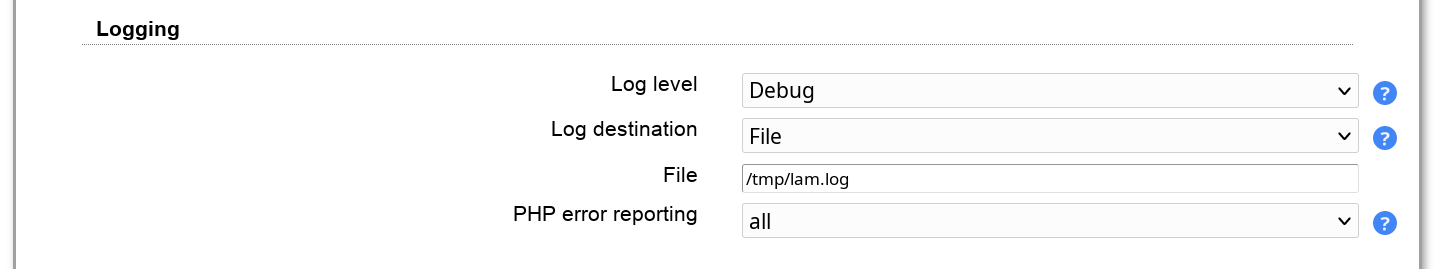 LAM can log events (e.g. user logins). You can use e.g. system logging (syslog for Unix, event viewer for Windows) or log to a separate file. Please note that LAM may log sensitive data (e.g. passwords) at log level "Debug". Production systems should be set to "Warning" or "Error".