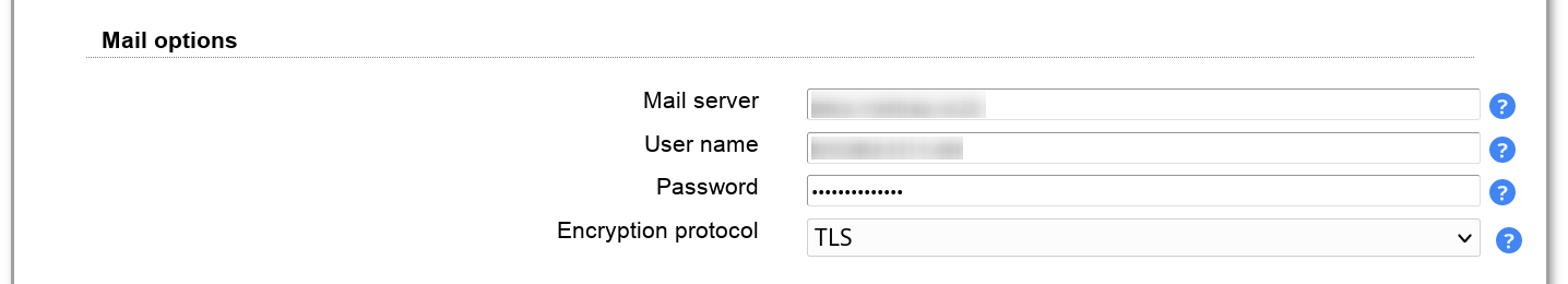 Encryption protocol: Use TLS when unsure. SSL is only for older servers and deprecated. The no encryption setting should not be used for production installations.