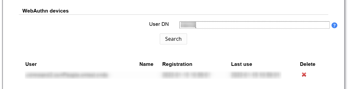 Here you can delete any webauthn device registrations. This section is only shown if at least one device is registered.
