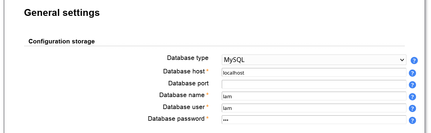 This defines where LAM should store the configuration settings. By default, local file system is used. If you have installed the PHP PDO extension incl. MySQL then you can also select MySQL here. This will then store all data (server profiles, account profiles, PDF structures, ...) in the database.