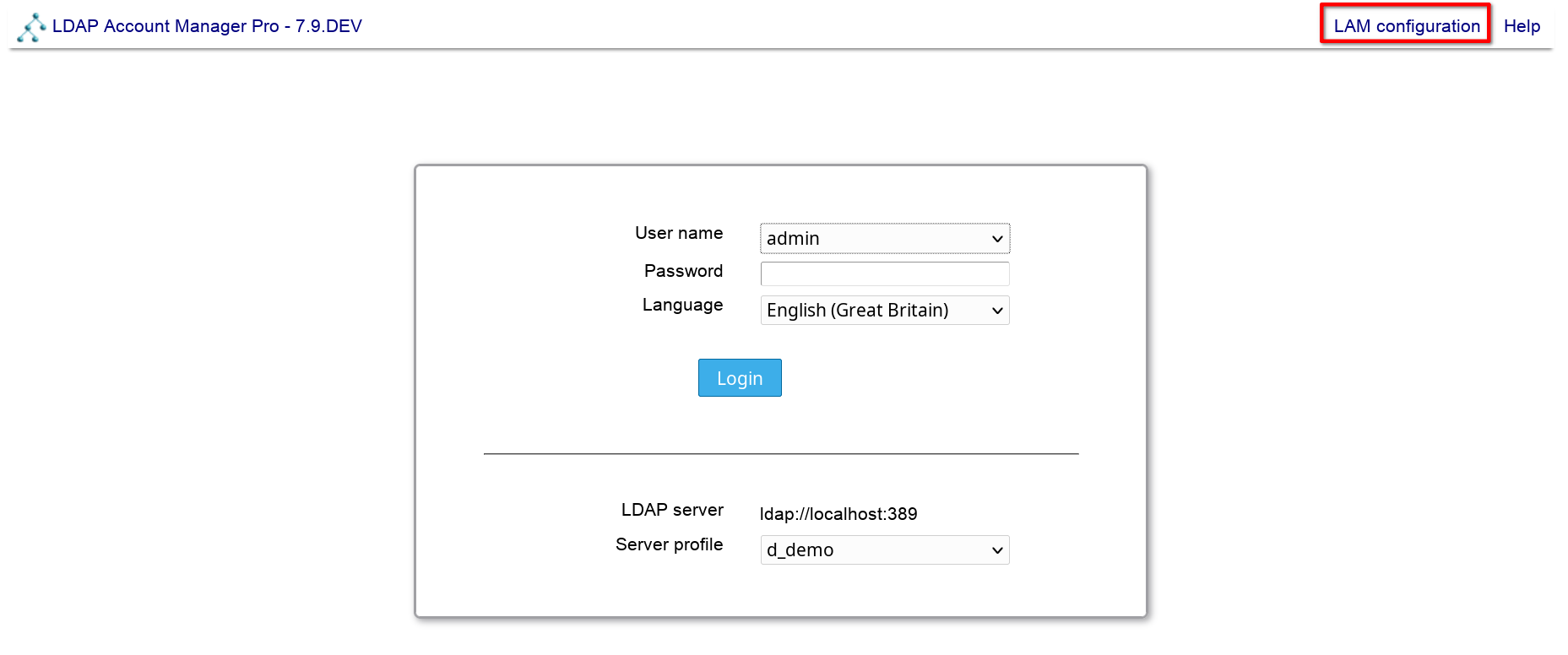 Here you can change LAM's general settings, setup server profiles for your LDAP server(s) and configure the self service (LAM Pro). You should start with the general settings and then setup a server profile.