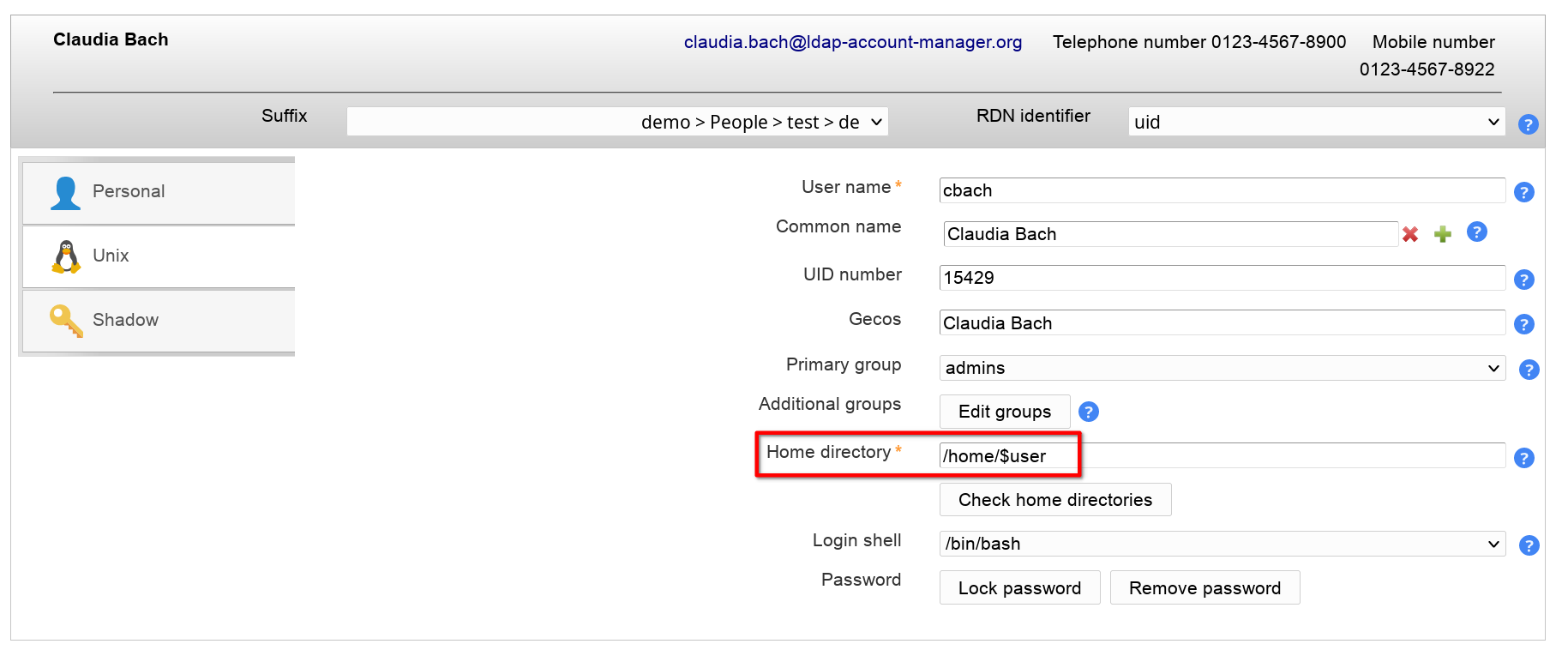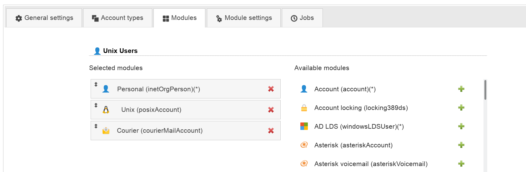 This module is the most common basis for user accounts in LAM. You can use it stand-alone to manage address book entries or in combination with Unix, Samba or other modules.