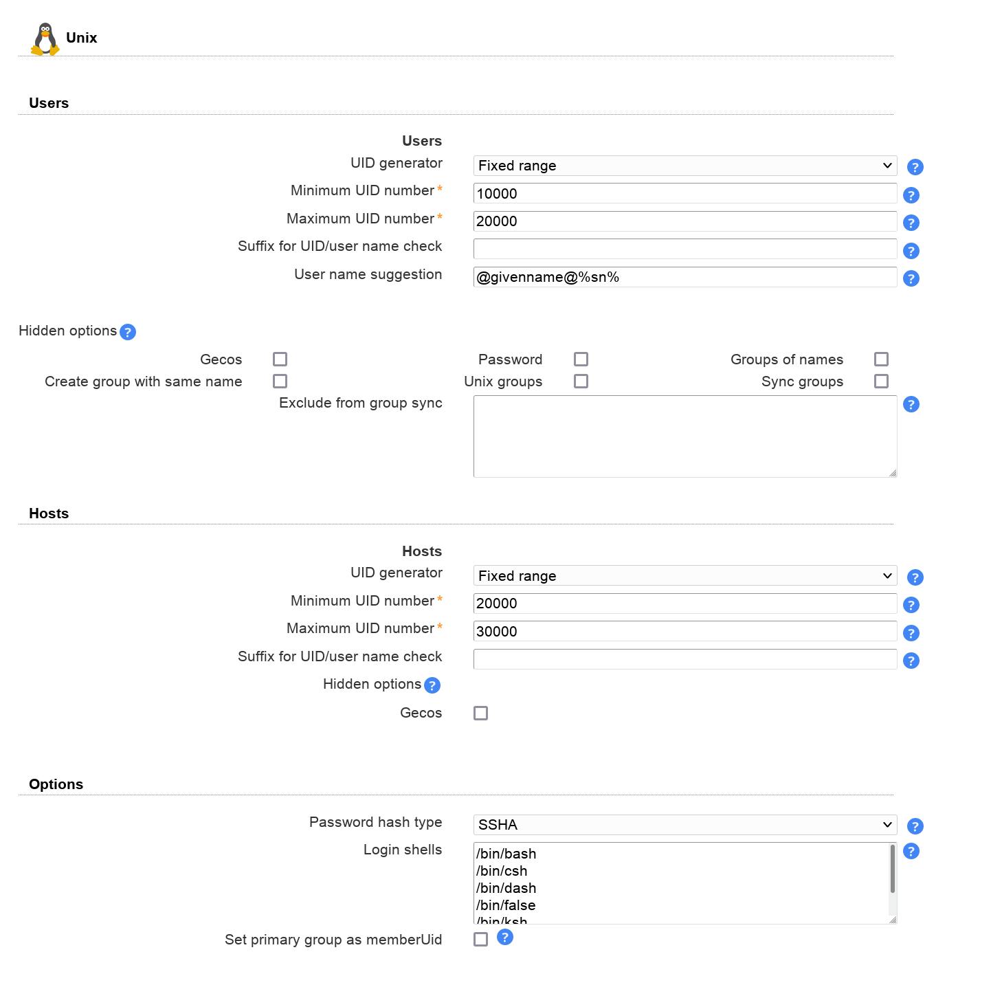 Magic number: Use this if your LDAP server assigns the UID numbers automatically (e.g. DNA by 389 server). Enter the server's magic number setting.