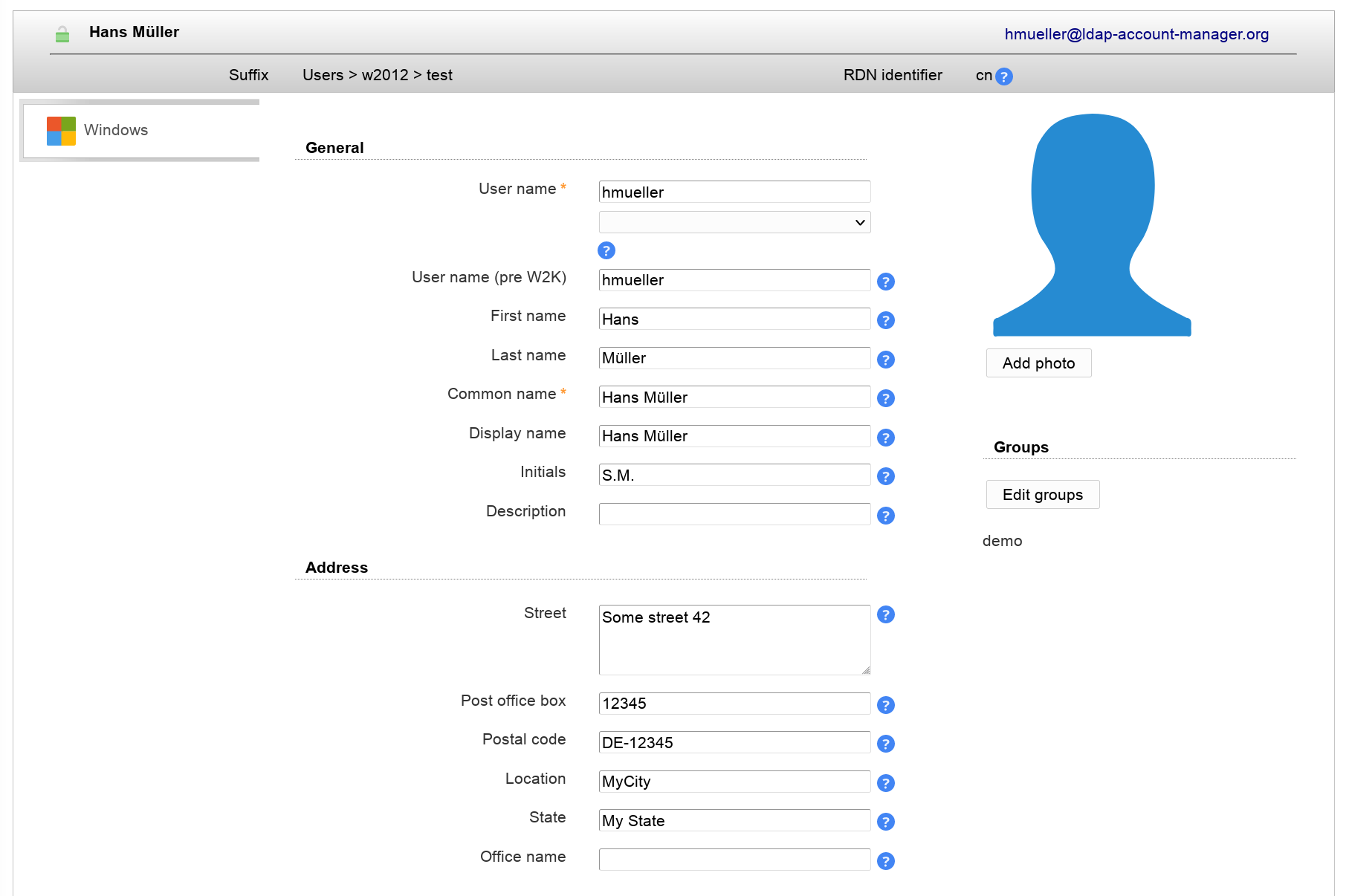 LAM manages various types of user accounts. This includes address book entries, Unix, Samba, Kopano and much more.