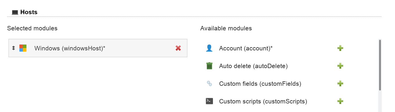 You can manage the IP addresses of host accounts with the ipHost module. It manages the following information: