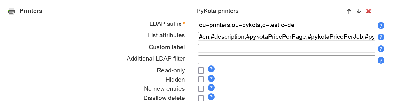 Please add the account type "Printers (PyKota printers)" on tab "Account types" in your server profile and setup the LDAP suffix where printers are stored.