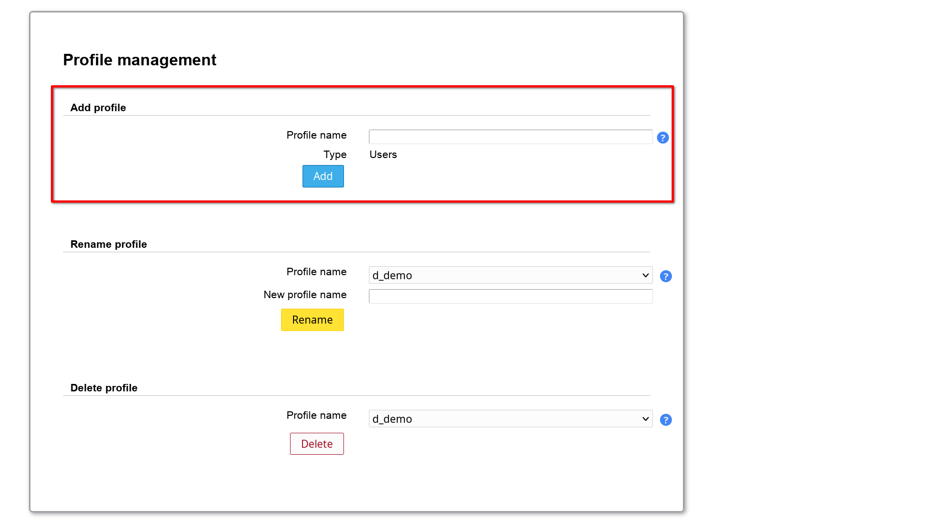 Specify a name for the new profile and enter your master configuration password (default is "lam") to save the profile.